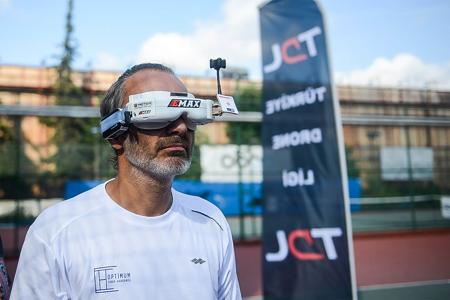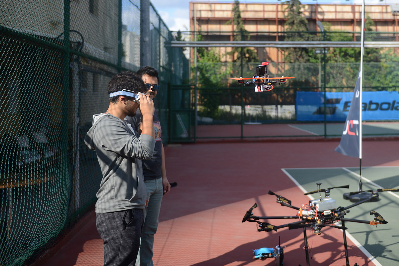 After the demonstration flight from the experienced TDL pilots, we gave the tennis club members FPV goggles for them to experience the feel of the FPV pilots during drone flight.